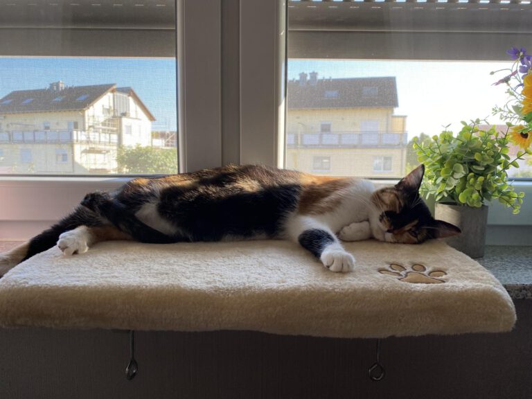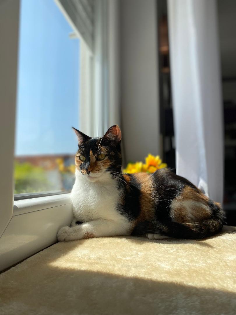 Die Lieblingsplätze sind definitiv die Fensterbänke, da beobachten die beiden zusammen täglich die Nachbarschaft und abends wird sehr viel getobt und gemaunzt🙈. Plötzliche Bewegungen oder unbekannte, laute Geräusche verschrecken sie noch immer, weswegen wir mit dem gesicherten Freigang noch etwas warten möchten. Auf unserer To-Do-Liste steht der Umbau aber definitiv.